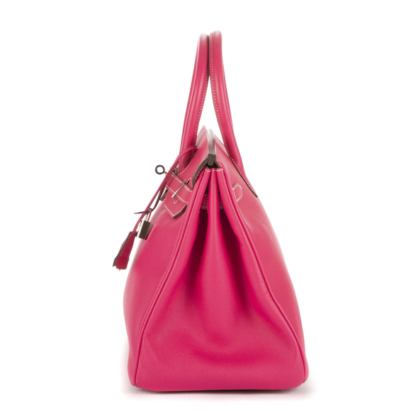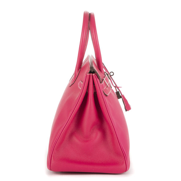 Hermès Handbag Birkin 35 in Pink Epsom Leather and Silver hardware. The product is in Excellent Condition (A).