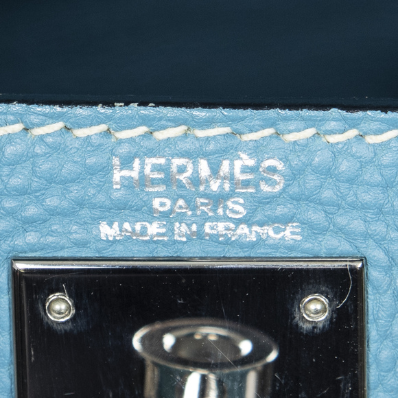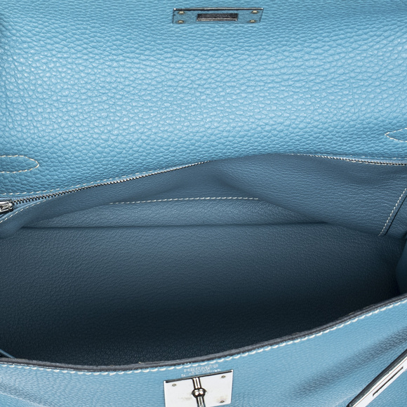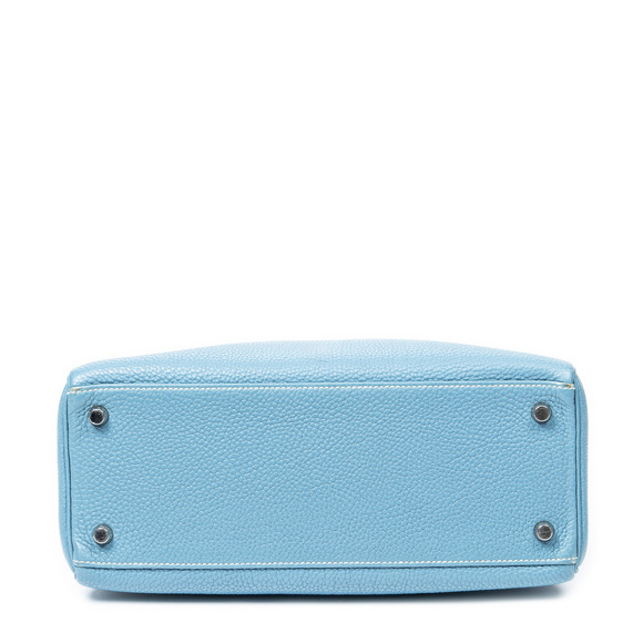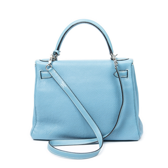 Hermès Shoulder Bag Kelly Retourne 28 in Blue Jean Togo Leather and Palladium hardware. The product is in Excellent Condition (A).