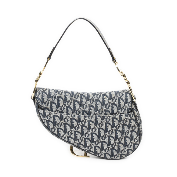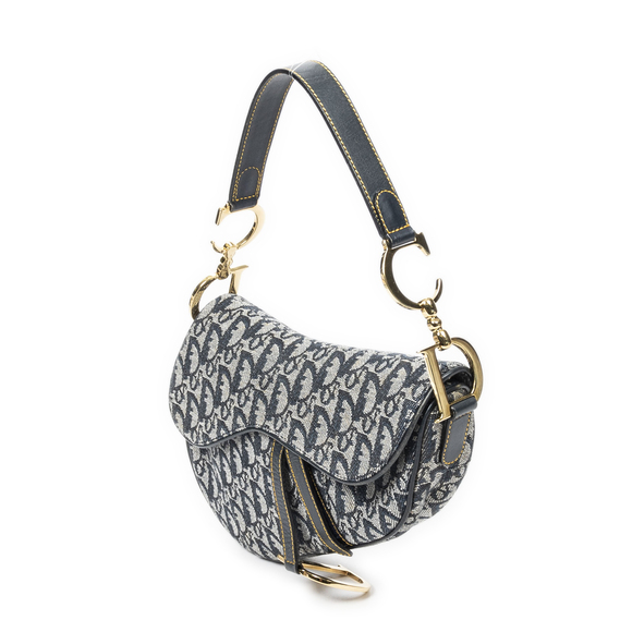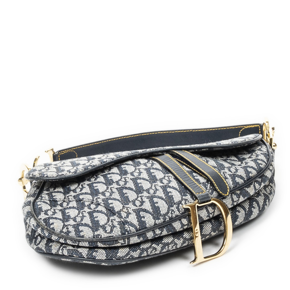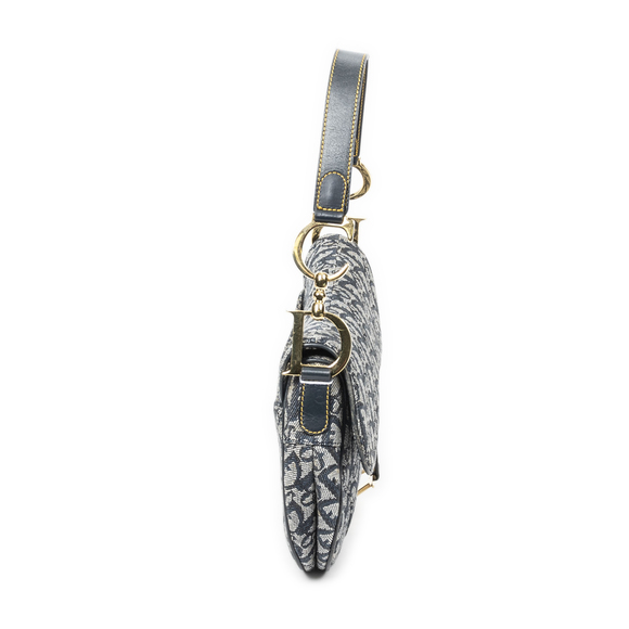 Dior Shoulder Bag Saddle Bag in Navy Blue/Beige Diorissimo Canvas and Gold hardware. The product is in Excellent Condition (A).