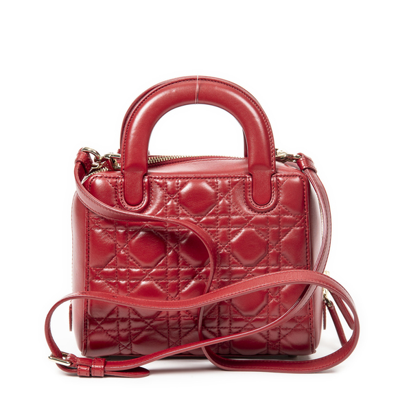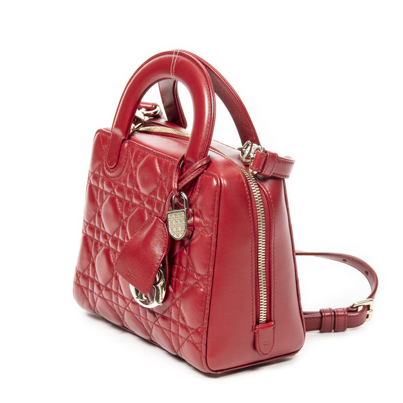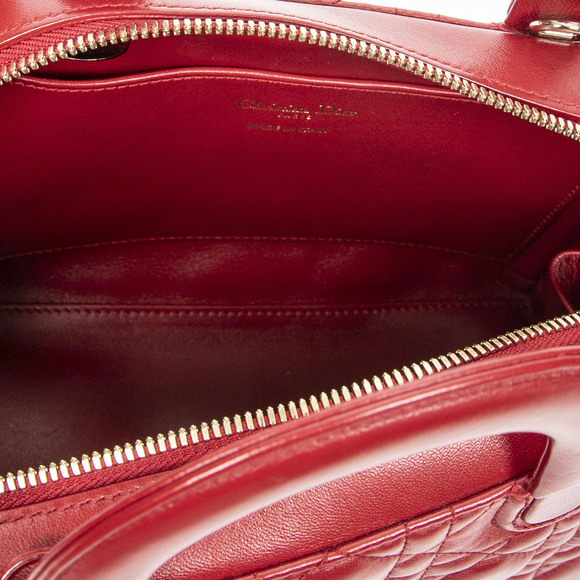 Dior Shoulder Bag Lily Tote in Red Cannage Lambskin Leather and Gold hardware. The product is in Perfect Condition (AA).