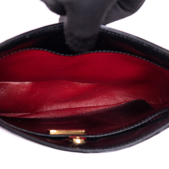 Prada Shoulder Bag Cleo Tote in Black Glaced Calfskin Leather and Gold hardware. The product is in Perfect Condition (AA).