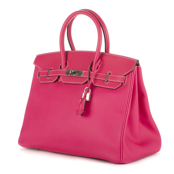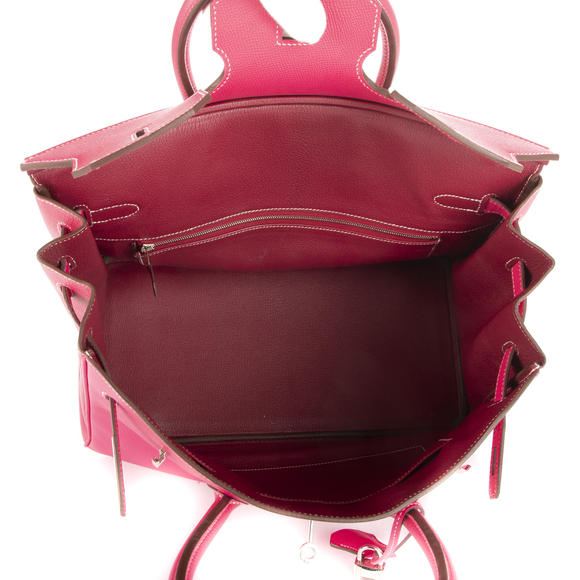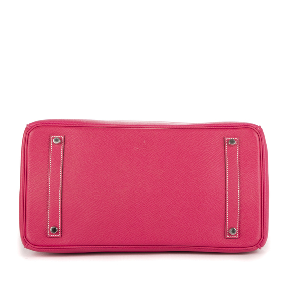 Hermès Handbag Birkin 35 in Pink Epsom Leather and Silver hardware. The product is in Excellent Condition (A).