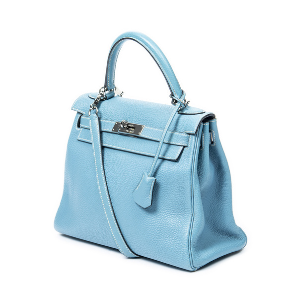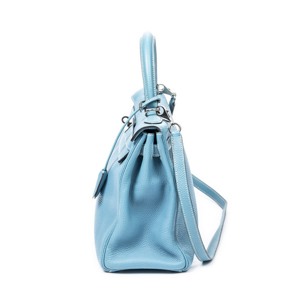 Hermès Shoulder Bag Kelly Retourne 28 in Blue Jean Togo Leather and Palladium hardware. The product is in Excellent Condition (A).