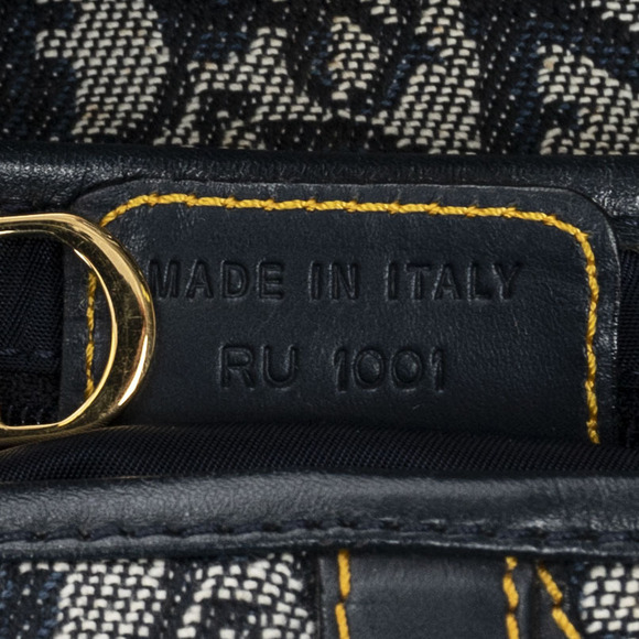 Dior Shoulder Bag Saddle Bag in Navy Blue/Beige Diorissimo Canvas and Gold hardware. The product is in Excellent Condition (A).