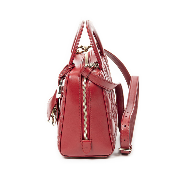 Dior Shoulder Bag Lily Tote in Red Cannage Lambskin Leather and Gold hardware. The product is in Perfect Condition (AA).