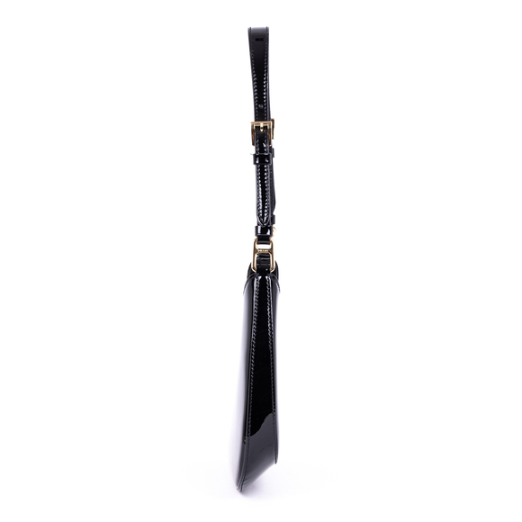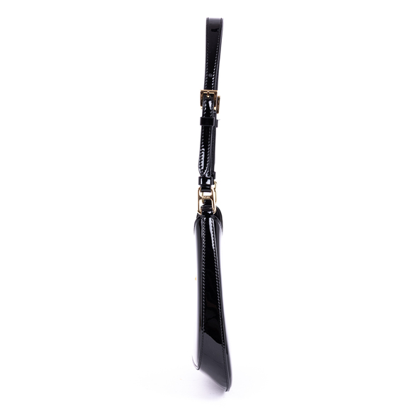 Prada Shoulder Bag Cleo Tote in Black Glaced Calfskin Leather and Gold hardware. The product is in Perfect Condition (AA).
