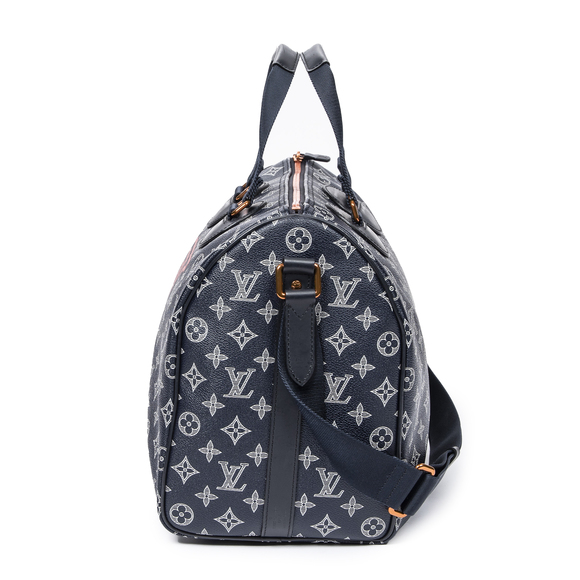 Louis Vuitton Shoulder Bag Rare Ltd. Ed. Speedy Bandouliere Upside Down 40 in Navy Blue/White Monogram Upside Down and Coral Pink Metal hardware. The product is in Perfect Condition (AA).